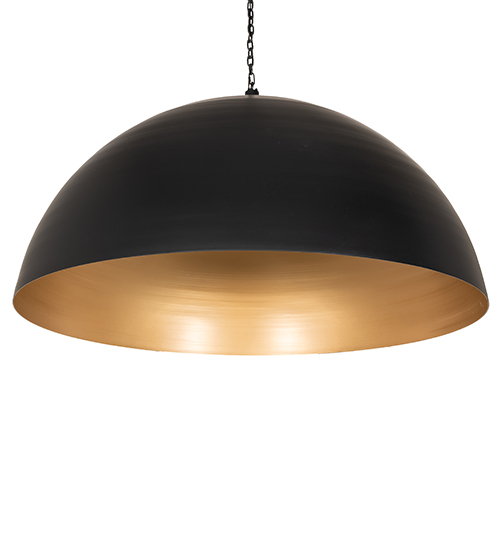A dramatically styled pendant. Gravity features a dome-shaped shade that is hand-finished in Matte Black and strikingly set on the outer surface, amazingly contrasting against an internal Gold Metallic finish. The richly appointed interior results in a warm, burnished glow. The overall height ranges from 39 to 114 inches as the chain can be adjusted in the field. The Gravity Pendant is featured in our American-made, American-designed, handcrafted Industrial Lighting Collection and manufactured in Yorkville, New York. UL and cUL listed for dry and damp locations.