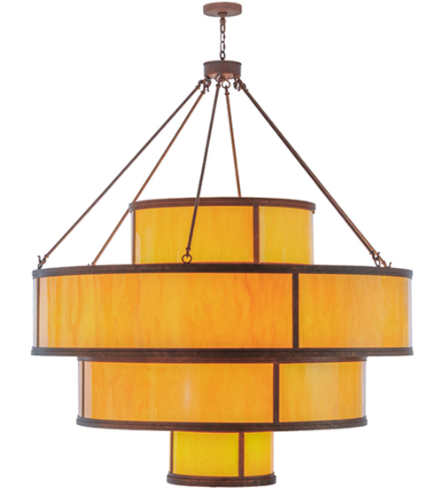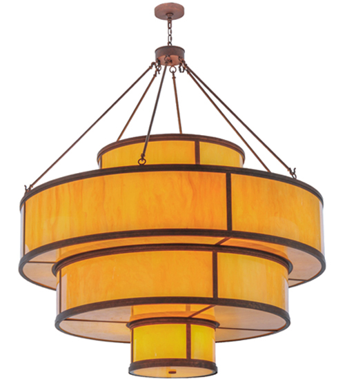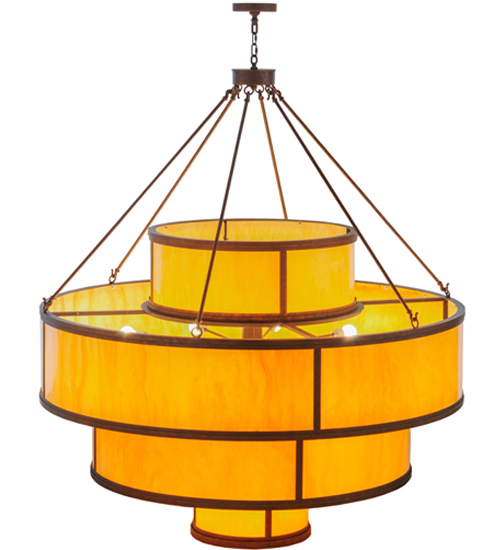 Bold, eye-catching multi-dimensional tiers reveal the stunning architectural look of the Jayne pendant. Four Amber Quartz Idalight diffusers are integrated into a highly fashionable aesthetic that is hard to resist. Clean sophistication astounds with round surfaces and straight lines to enhance any room. Enhanced by Antique Rust finished hardware, the fixture delivers perfect illumination for lobbies, foyers, ballrooms, and other large spaces. The Jayne Pendant is included in our American-made, American-designed, handmade Transitional Lighting Collection and manufactured in Yorkville, NY. UL & cUL listed for dry and damp locations. Featured in The Cherokee Chophouse in Marietta, GA.