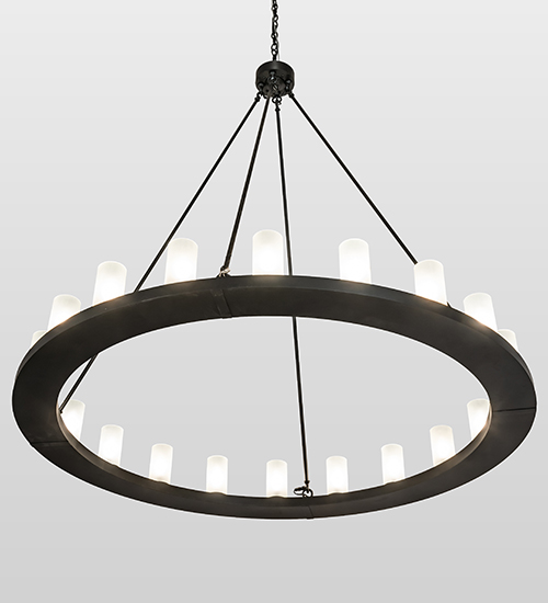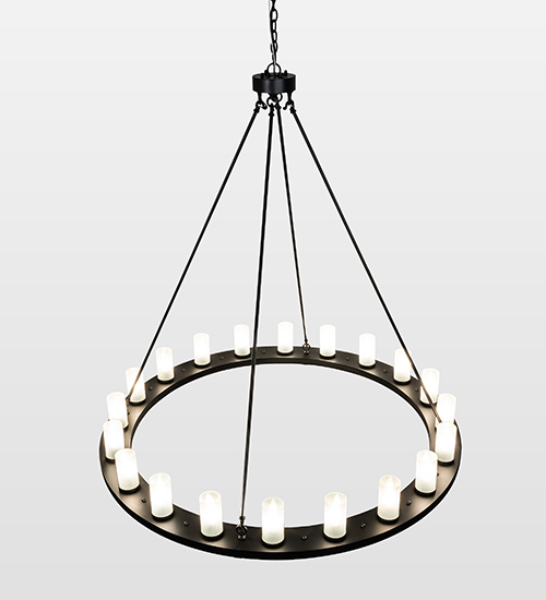 Add a modern look to an old world chandelier of yore. Loxley is custom crafted with 20 Clear Frosted Glass Cylindres on a decorative ring hand finished in a Blackwash hue. Ideal for illuminating dining areas, conference tables, lobbies and other residential, hospitality and commercial spaces. The overall height ranges from 66 to 245 inches as the chain length can be easily adjusted in the field to accommodate your specific lighting application needs. Handmade in our 180,000 square foot manufacturing facility in Yorkville, New York. Diffuser colors, metal finishes and chandelier sizes can be customized to your specifications. UL and cUL listed for dry and damp locations.