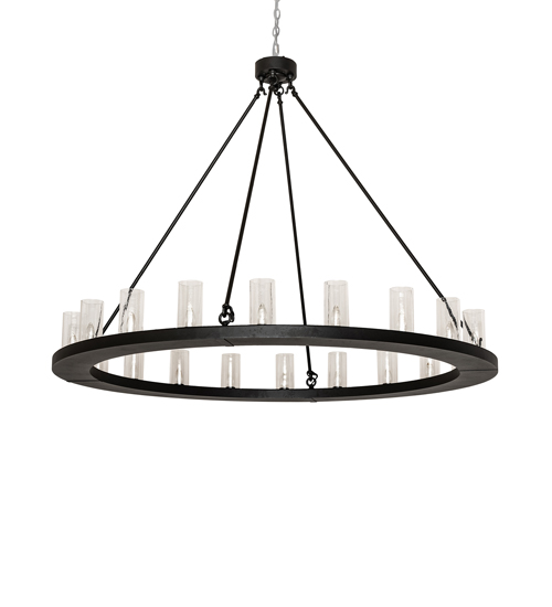 Replicating a classic chandelier design. Loxley features 20 Seeded Glass Cylindres on a decorative ring suspended by chains and hand finished in Old Wrought Iron. Ideal for illuminating dining areas, conference tables, lobbies and other residential, hospitality and commercial spaces. Overall height ranges from 56 to 126 inches as the chain can be easily adjusted in the field. Domestically Produced in our 180,000 square foot manufacturing facility in Yorkville, New York. Customize the lens colors, metal finishes and sizes to meet your desires. UL and cUL listed for dry and damp locations.