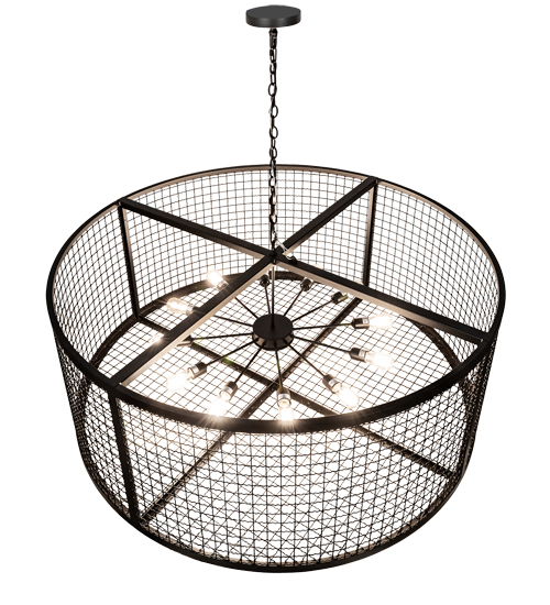 Discover a unique decorative look and industrial lighting design featuring a dramatic caged frame. The pendant features 12 customer-supplied, Edison styled lamps displayed from within. Paloma Golpe offers solid hardware, frame and grill in a Textured Black finish. The overall height ranges from 31 to 91 inches as the chain length can be easily adjusted in the field to accommodate your specific lighting application needs. Illuminating dining tables, conference tables and other residential and commercial spaces. Handcrafted in our 180,000 square foot manufacturing facility in Yorkville, NY. Dimmable energy efficient lamping options offered. Special sizes, designs and finishes available. UL and cUL listed for damp and dry locations.