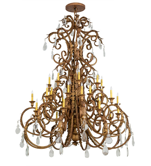 With shapely curves in an exquisite Autumn Leaf finish, 32 delicate Amber faux candlelights are perched on ornate bobeches embraced by a symphony of scrolled arms and accents. This luxurious chandelier is majestically draped with acanthus leaves and crystal pendalogs to add sparkle and romantic charm to your room. Custom crafted by highly skilled artisans in our 180,000 square foot manufacturing facility in Yorkville, New York. Custom colors, styles and sizes are available, as well as dimmable energy efficient lamping options such as LED. UL and cUL listed for damp and dry locations.