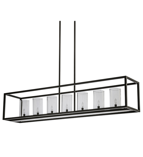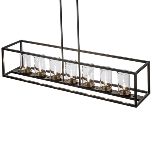Affinity is a finely executed, minimalist design featuring seven Clear glass Cylindres within a sleek, custom frame. This linear fixture is enhanced with a straight line frame and hardware featured in a Timeless Bronze finish and perfect for illuminating conference rooms, islands, lobbies and other spaces. The pendant offers hand detailed American craftsmanship perfected by years of time honored artistry, passed down from generations of skilled artisans. Custom sizes, designs and colors are available, as well as dimmable, energy efficient options including LED. This fixture is UL and cUL listed for damp and dry locations.