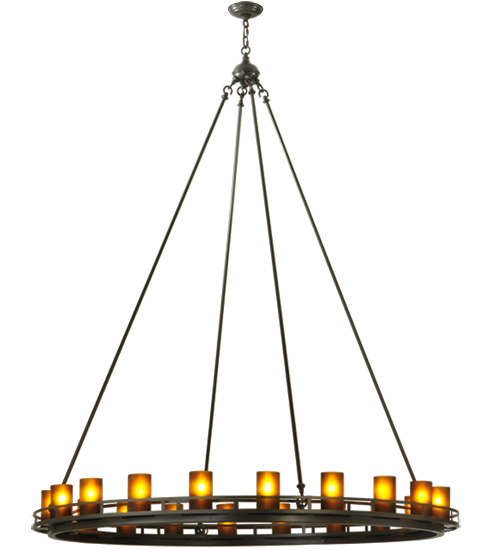 Blending an old-world style with a rustic look. This Barbury chandelier is custom crafted with a dozen Amber Frosted Glass Cylindres on a decorative ring that is hand finished in a Timeless Bronze. This Ring is ideal for illuminating dining areas, conference tables, lobbies and other residential and commercial spaces. The overall height ranges from 78 to 195 inches as the chain length can be easily adjusted in the field to accommodate your specific lighting application needs. Custom crafted by highly skilled artisans in our 180,000 square foot manufacturing facility in Yorkville, New York. Diffuser styles, metal finishes and pendant sizes can be customized. UL and cUL listed for dry and damp locations.