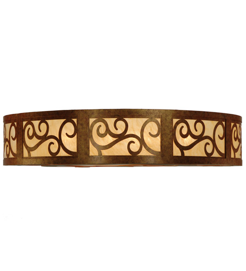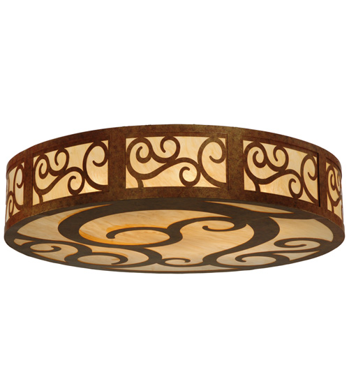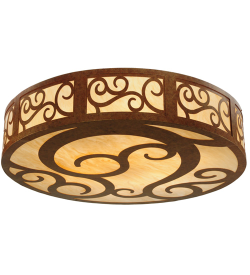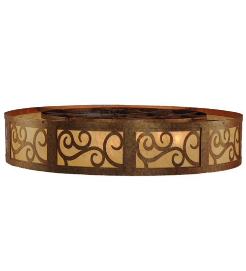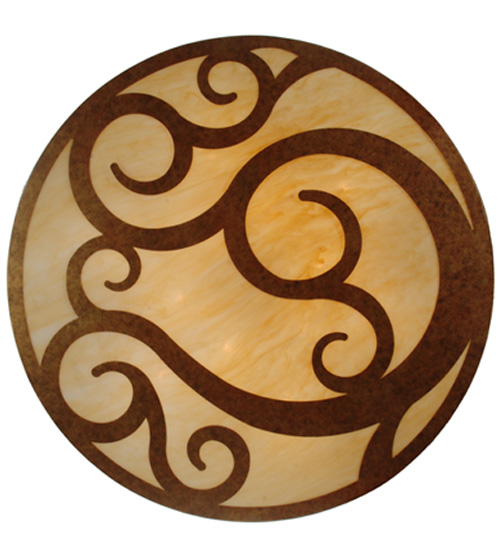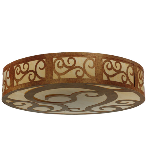 A touch of warm opulence is blended with elegant scroll-like styling. This ceiling fixture offers a lovely transitional style, which is handcrafted with decorative accents and hardware featured in a stunning Autumn Leaf finish. The impressive Dean fixture integrates a Sahara Taupe Idalight diffuser, which projects beautiful ambient illumination. Handcrafted in our 180,000 square foot manufacturing facility in Yorkville New York. This Grand styled fixture is available in custom sizes, styles, colors and dimmable energy efficient lamping such as LED. UL and cUL listed for damp and dry locations.
