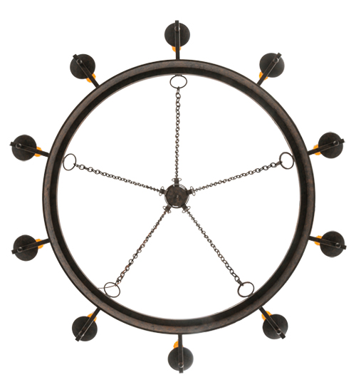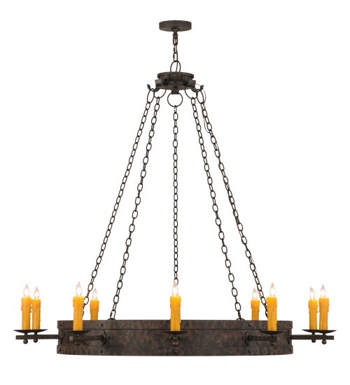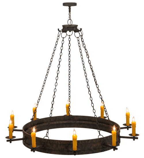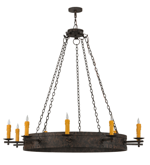 Custom crafted for the King or Queen in your castle, Parnella presents a touch of warm opulence blended with handsome rustic styling. This chandelier offers an extraordinary transitional style as sparkling illumination evokes from 10 stunning Amber faux candlelights that adorn the perimeter of this Solid Steel ring with decorative arms and accents in a Coffee Bean finish. This fixture will make a design statement as a centerpiece in any room including an entryway, dining room, lobby, conference room and other locations. Handcrafted by highly skilled artisans in the USA, this fixture is available in custom sizes, styles, colors and dimmable energy efficient lamping options including LED. Parnella is UL and cUL listed for dry and damp locations.