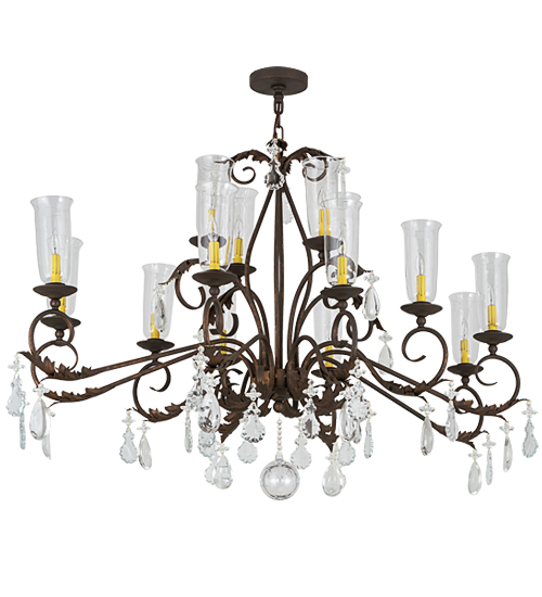 Inspired by the beauty and grace of ballrooms in renowned castles and mansions spanning the globe, Windsor features 14 Clear Glass Hurricane styled shades that reveal Ivory faux candle lights. The elegant shades are embraced by bobeches with Acanthus Leaf Accents and Crystal Glass Pendalogs and Orb on a frame with hardware featured in a Gilded Tobacco finish. The overall height of this chandelier ranges from 43 to 116 inches as the chain length can be easily adjusted in the field to accommodate your specific lighting application needs. Handcrafted in our 180,000 square foot manufacturing facility in the USA, this fixture is available in custom sizes, styles and colors, as well as dimmable energy efficient lamping options. UL and cUL listed for damp and dry locations.