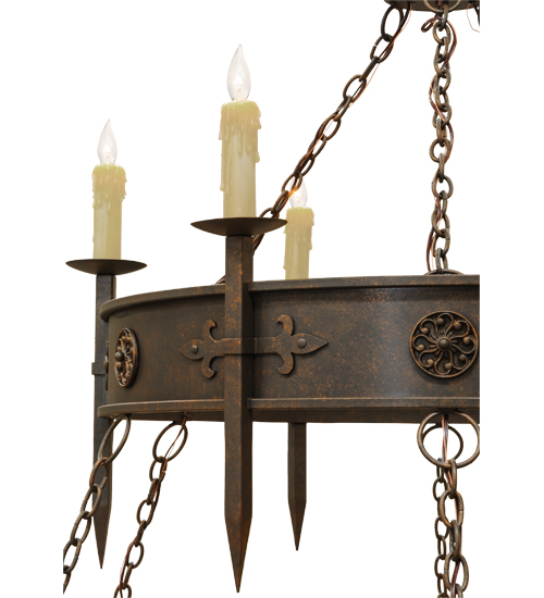 Calandra brings together a luxurious charm and a rich artistic look. Floral medallions and other decorative motifs accentuate this stunning steel chandelier featuring 18 exquisite Ivory faux candlelights perched on bobeches. The fixture is enhanced with sturdy, detailed hardware and a scrolled finial featured in a handsome Gilded Tobacco finish. The fixture is ideal for entryways, dining areas, lobbies, ballrooms and other rooms in a variety of residential and commercial settings. Handcrafted by highly skilled artisans in our 180,000 square foot manufacturing facility in Yorkville, New York. Faux candlelights, metal finishes and fixture sizes can be customized to your needs. UL and cUL listed for damp and dry locations.