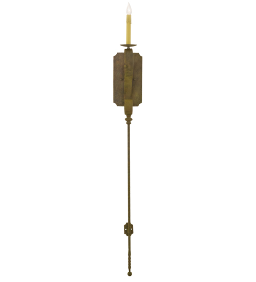 Step back in time with handsome old world styling that greets a distinctive sophisticated look. A Faux Ivory candlelight is perched atop of a custom bobeche accented with a very long slender decorative stem that is embellished with a ballpoint accent and attached to the wall with a scroll-like backplate and a miniature wall canopy on the bottom. Stunning hardware is hand forged and hand finished in an Organic Rust hue. Ideal for hallways, foyers and other spaces in homes, restaurants, pubs, hotels and other interiors. Custom crafted in our 180,000 square foot manufacturing facility in Yorkville, New York. Custom sizes, styles, colors and dimmable energy efficient lamping options available. UL and cUL listed for dry and damp locations.