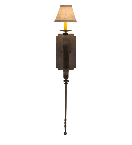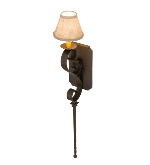 Romantic charm and elegance come to light with the Cipriana wall sconce, which is designed as a dramatic accent for any room or corridor. The sconce features an Oyster Burlap Textrene shade perched on a faux candlelight and bobeche with a scrolled arm and long ballpoint stem and hardware featured in a Gilded Tobacco finish. Handcrafted by highly skilled artisans in our 180,000 square foot manufacturing facility in Yorkville, New York, this fixture is available in custom sizes, styles, colors and dimmable energy efficient lamping options such as LED. The wall fixture is UL and cUL listed for damp and dry locations.