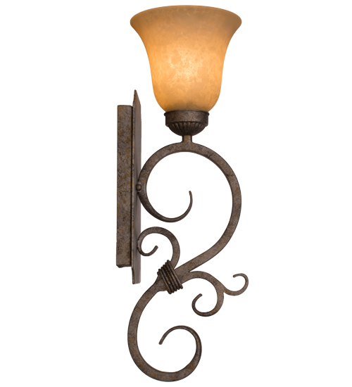 Exquisite minimalism blends with a distinctive revivalism as a mellow glow is cast from this bell shaped, Scavo art glass shade which adorns a scroll-like arm and hardware featured in an authentic an Corinth finish. These lighting fixtures are offered in a variety of finishes, styles and energy efficient lamping options. The fixture is custom crafted in our manufacturing facility in the USA.