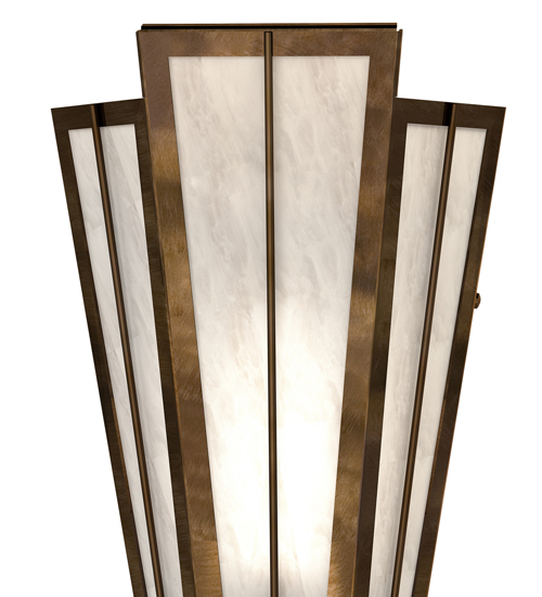 Add elegance with Deco inspired lighting reminiscent of classic Hollywood theaters. The Angelwing Idalight lens defines an extraordinary V-shaped sconce which is complemented with decorative accents, frame, and hardware in an Antique Copper finish. The fixture is ideal for foyers, corridors and other interiors in homes, home theaters, resorts, hotels, and restaurants. Custom crafted in our 180,000 square foot manufacturing facility in Yorkville, NY. Available in custom designs, lens colors, hardware finishes, and sizes. Dimmable energy efficient lamping options offered. UL and cUL listed for damp and dry locations.