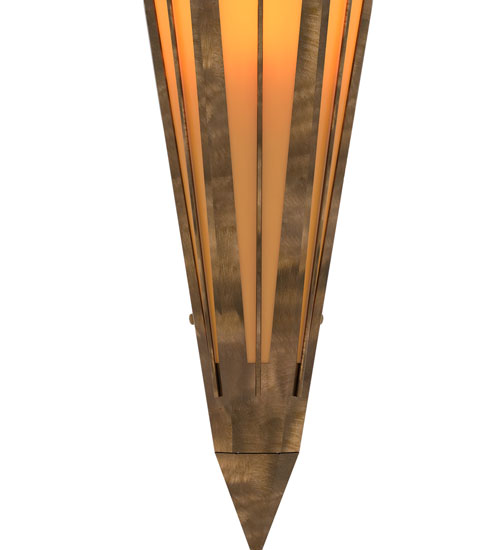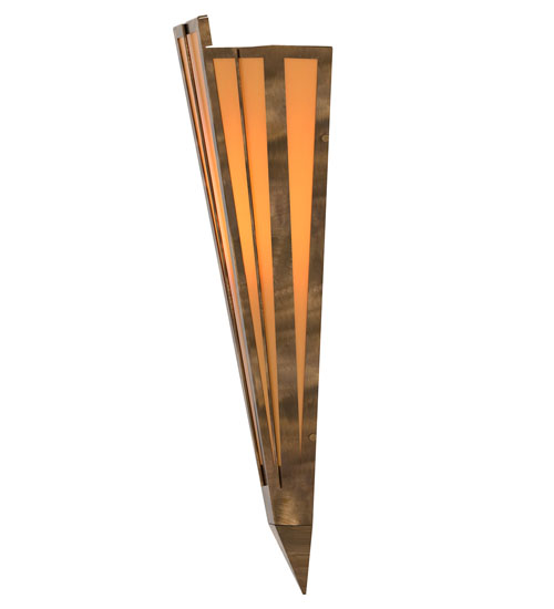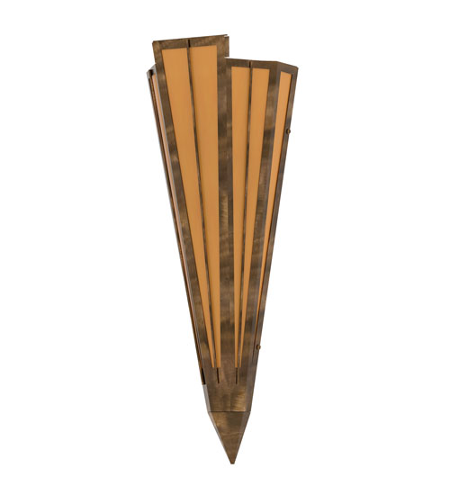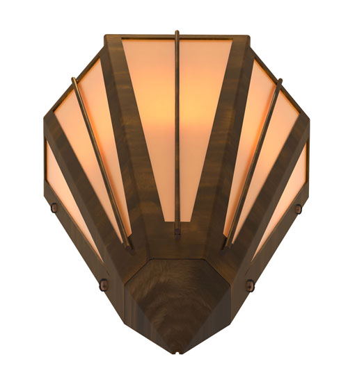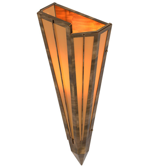 Add elegance with Deco inspired lighting reminiscent of old Hollywood Theaters. The Amber Quartz Idalight lens defines an extraordinary V-shaped sconce which is complemented with decorative accents, frame, and hardware in an Antique Copper finish. The fixture is ideal for foyers, corridors and other interiors in homes, home theaters, resorts, hotels, and restaurants. Custom crafted in our 180,000 square foot manufacturing facility in Yorkville, NY. Available in custom designs, lens colors, hardware finishes, and sizes. Dimmable energy efficient lamping options offered. UL and cUL listed for damp and dry locations.