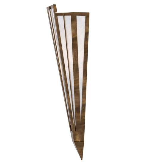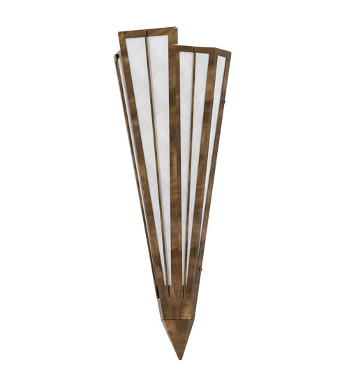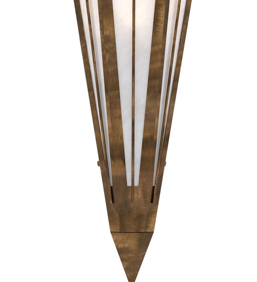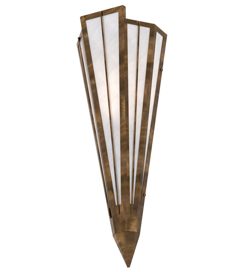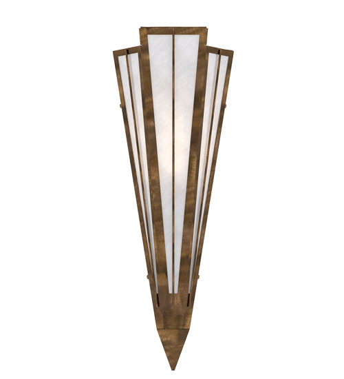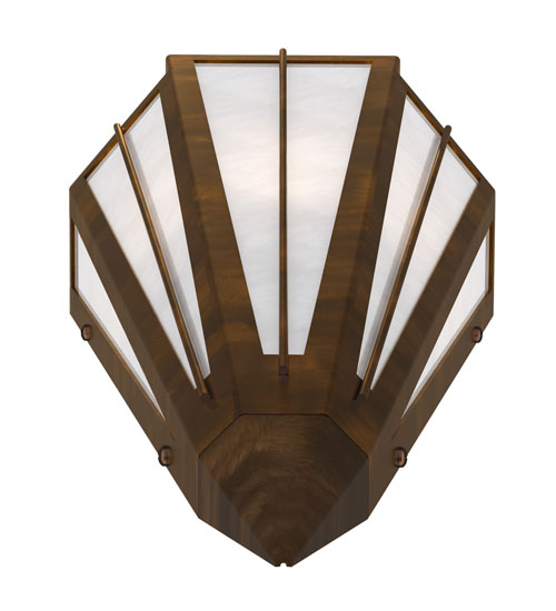 Add elegance with Deco inspired lighting reminiscent of classic Hollywood theaters. The White Art Glass lens defines an extraordinary V-shaped sconce which is complemented with decorative accents, frame, and hardware in an Antique Copper finish. The fixture is ideal for foyers, corridors and other interiors in homes, home theaters, resorts, hotels, and restaurants. Custom crafted in our 180,000 square foot manufacturing facility in Yorkville, NY. Available in custom designs, lens colors, hardware finishes, and sizes. Dimmable energy efficient lamping options offered. UL and cUL listed for damp and dry locations.