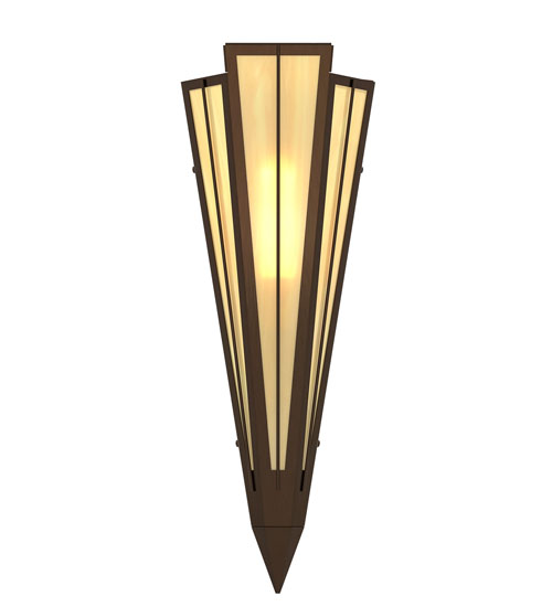 Add elegance with Deco inspired lighting reminiscent of classic Hollywood theaters. The Botticino Idalight lens defines an extraordinary V-shaped sconce which is complemented with decorative accents, frame, and hardware in a Timeless Bronze finish. The fixture is ideal for foyers, corridors and other interiors in homes, home theaters, resorts, hotels, and restaurants. Custom crafted in our 180,000 square foot manufacturing facility in Yorkville, NY. Available in custom designs, lens colors, hardware finishes, and sizes. Dimmable energy efficient lamping options offered. UL and cUL listed for damp and dry locations.