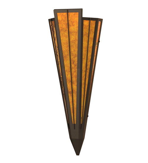 Add elegance with Deco inspired lighting reminiscent of classic Hollywood theaters. The Amber Mica lens defines an extraordinary V-shaped sconce which is complemented with decorative accents, frame, and hardware in an Oil Rubbed Bronze finsih. The fixture is ideal for foyers, corridors and other interiors in homes, home theaters, resorts, hotels, and restaurants. Custom crafted in our 180,000 square foot manufacturing facility in Yorkville, NY. Available in custom designs, lens colors, hardware finishes, and sizes. Dimmable energy efficient lamping options offered. UL and cUL listed for damp and dry locations.