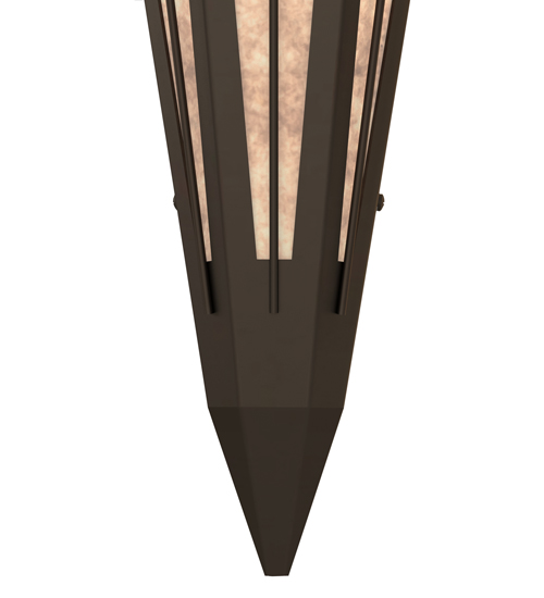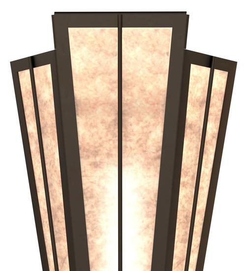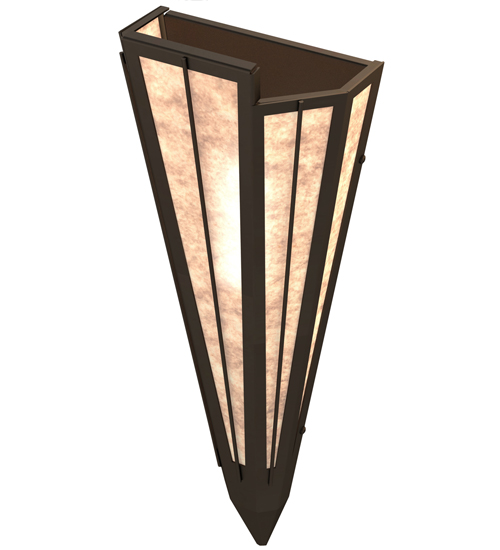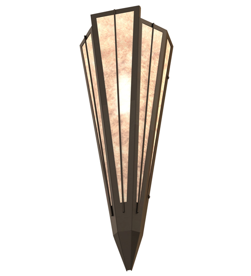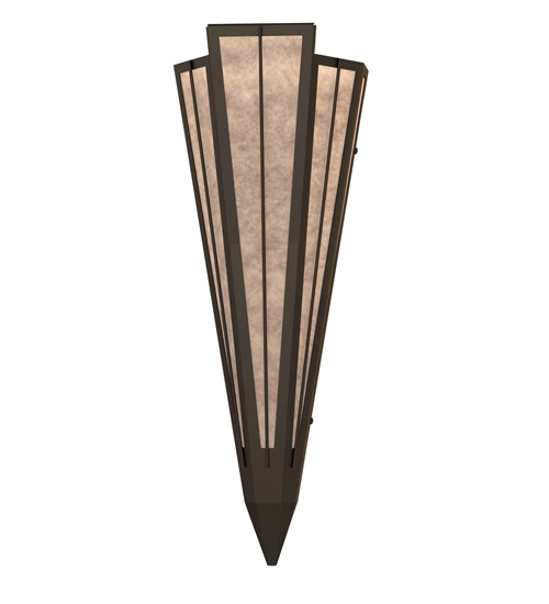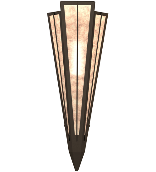 Add elegance with Deco inspired lighting reminiscent of classic Hollywood theaters. The Silver Mica lens defines an extraordinary V-shaped sconce which is complemented with decorative accents, frame, and hardware in an Oil Rubbed Bronze finsih. The fixture is ideal for foyers, corridors and other interiors in homes, home theaters, resorts, hotels, and restaurants. Custom crafted in our 180,000 square foot manufacturing facility in Yorkville, NY. Available in custom designs, lens colors, hardware finishes, and sizes. Dimmable energy efficient lamping options offered. UL and cUL listed for damp and dry locations.