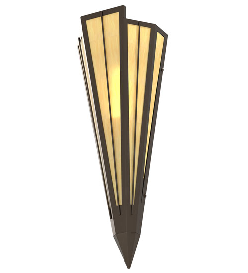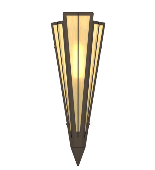 Add elegance with Deco inspired lighting reminiscent of classic Hollywood theaters. The Botticino Idalight lens defines an extraordinary V-shaped sconce which is complemented with decorative accents, frame, and hardware in an Oil Rubbed Bronze finish. The fixture is ideal for foyers, corridors and other interiors in homes, home theaters, resorts, hotels, and restaurants. Custom crafted in our 180,000 square foot manufacturing facility in Yorkville, NY. Available in custom designs, lens colors, hardware finishes, and sizes. Dimmable energy efficient lamping options offered. UL and cUL listed for damp and dry locations.