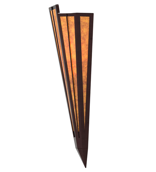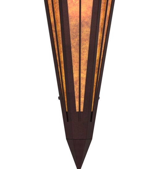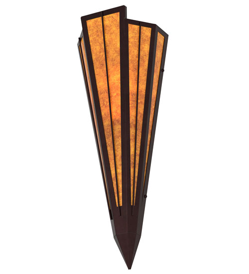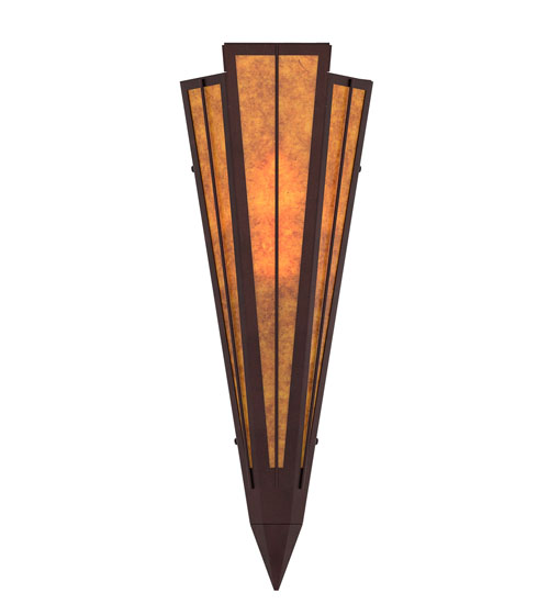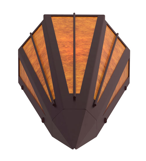Add elegance with Deco inspired lighting reminiscent of classic Hollywood theaters. The Amber Mica lens defines an extraordinary V-shaped sconce which is complemented with decorative accents, frame, and hardware in a Mahogany Bronze finish. The fixture is ideal for foyers, corridors and other interiors in homes, home theaters, resorts, hotels, and restaurants. Custom crafted in our 180,000 square foot manufacturing facility in Yorkville, NY. Available in custom designs, lens colors, hardware finishes, and sizes. Dimmable energy efficient lamping options offered. UL and cUL listed for damp and dry locations.