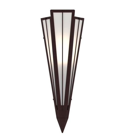 Contrail Mist Idalight is transformed into an abstract lighting design similar to the famed deco designs showcased in Classic Hollywood theaters. This extraordinary V-shaped sconce is complemented with decorative accents and hardware featured in a Mahogany Bronze finish. Ideal for foyers, corridors and other interiors in homes, home theaters, resorts, hotels and restaurants. Handcrafted by highly skilled artisans in our 180,000 square foot manufacturing facility in Yorkville, New York. Custom colors, styles and sizes are available. Dimmable energy efficient lamping options offered. UL and cUL listed for damp and dry locations.