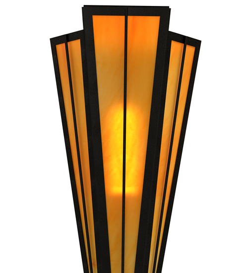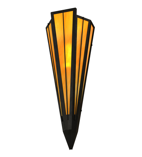 Ambra Siena Idalight is transformed into abstract lighting design similar to the famed deco designs showcased in Classic Hollywood theaters. This extraordinary V-shaped sconce is complemented with decorative accents and hardware featured in a Textured Black finish. Ideal for foyers, corridors, and other interiors in homes, home theaters, resorts, hotels and restaurants. Handcrafted by highly skilled artisans in our 180,000 square foot manufacturing facility in Yorkville, New York. Custom colors, styles and sizes are available. Dimmable energy efficient lamping options offered. UL and cUL listed for damp and dry locations.