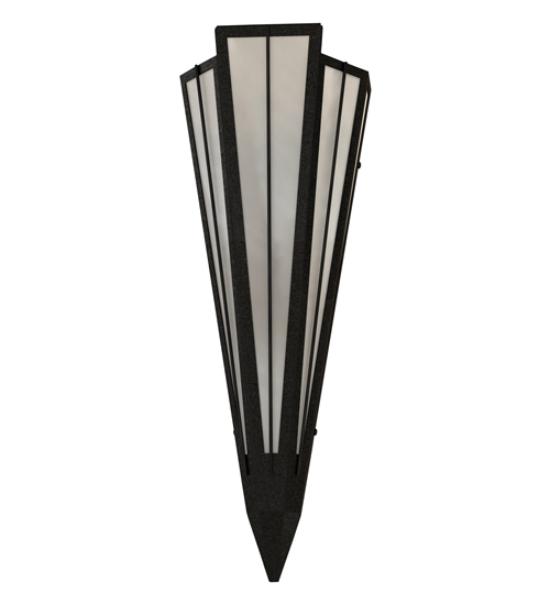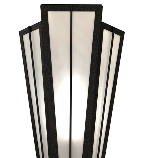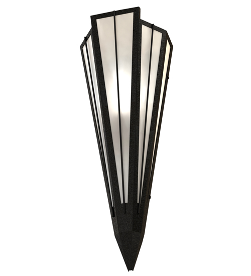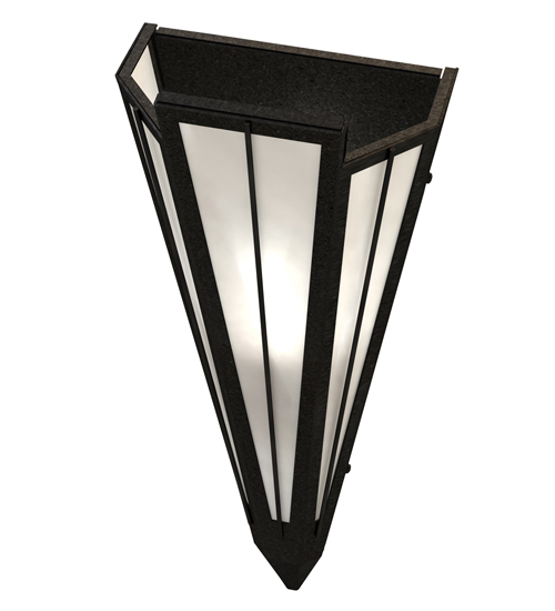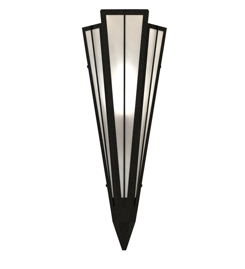 Add elegance with Deco inspired lighting reminiscent of classic Hollywood theaters. The White Art Glass lens defines an extraordinary V-shaped sconce which is complemented with decorative accents, frame, and hardware in a Textured Black finish. The fixture is ideal for foyers, corridors and other interiors in homes, home theaters, resorts, hotels, and restaurants. Custom crafted in our 180,000 square foot manufacturing facility in Yorkville, NY. Available in custom designs, lens colors, hardware finishes, and sizes. Dimmable energy efficient lamping options offered. UL and cUL listed for damp and dry locations.