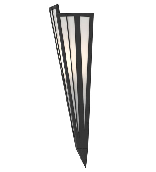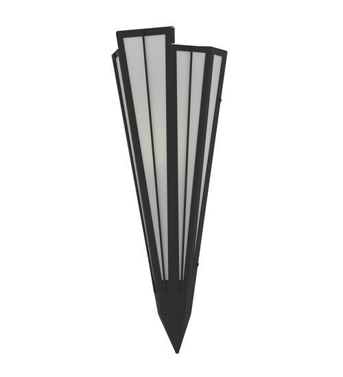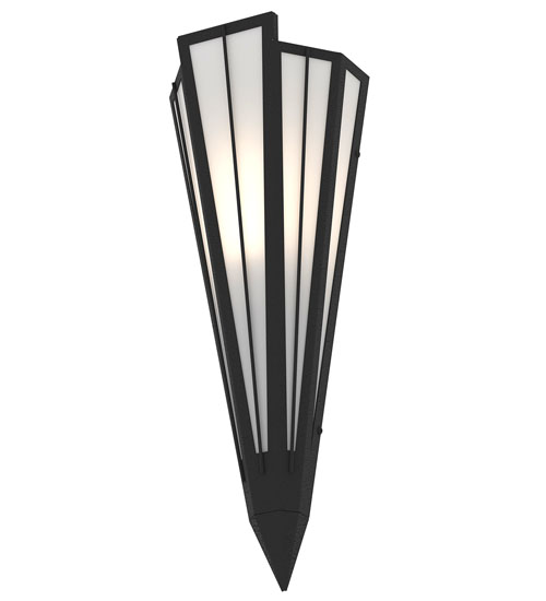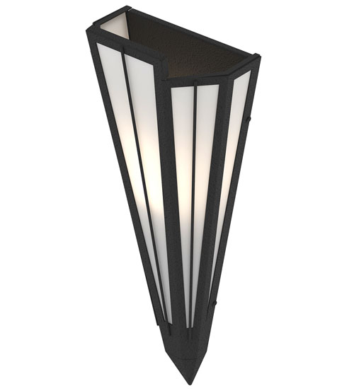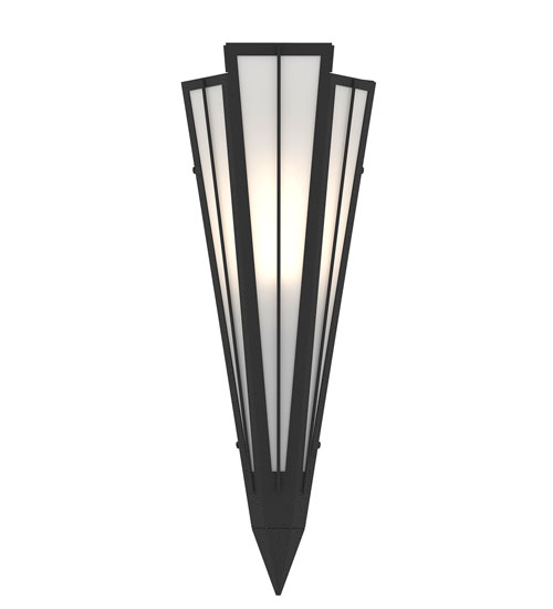 Contrail Mist Idalight is transformed into an abstract lighting design similar to the famed deco designs showcased in Classic Hollywood theaters. This extraordinary V-shaped sconce is complemented with decorative accents and hardware featured in a Textured Black finish. Ideal for foyers, corridors and other interiors in homes, home theaters, resorts, hotels and restaurants. Handcrafted by highly skilled artisans in our 180,000 square foot manufacturing facility in Yorkville, New York. Custom colors, styles and sizes are available. Dimmable energy efficient lamping options offered. UL and cUL listed for damp and dry locations.