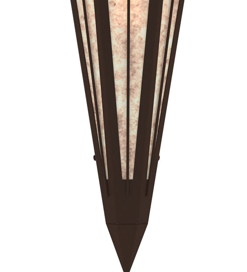 Add elegance with Deco inspired lighting reminiscent of classic Hollywood theaters. The Silver Mica lens defines an extraordinary V-shaped sconce which is complemented with decorative accents, frame, and hardware in a Cafe Noir finish. The fixture is ideal for foyers, corridors and other interiors in homes, home theaters, resorts, hotels, and restaurants. Custom crafted in our 180,000 square foot manufacturing facility in Yorkville, NY. Available in custom designs, lens colors, hardware finishes, and sizes. Dimmable energy efficient lamping options offered. UL and cUL listed for damp and dry locations.