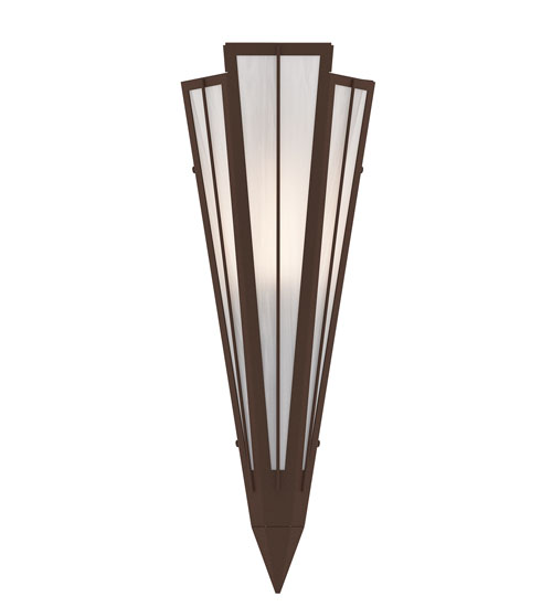 Add elegance with Deco inspired lighting reminiscent of classic Hollywood theaters. The Angelwing Idalight lens defines an extraordinary V-shaped sconce which is complemented with decorative accents, frame, and hardware in a Cafe Noir finish. The fixture is ideal for foyers, corridors and other interiors in homes, home theaters, resorts, hotels, and restaurants. Custom crafted in our 180,000 square foot manufacturing facility in Yorkville, NY. Available in custom designs, lens colors, hardware finishes, and sizes. Dimmable energy efficient lamping options offered. UL and cUL listed for damp and dry locations.