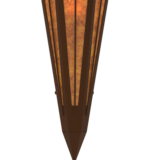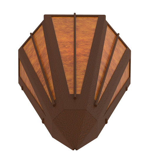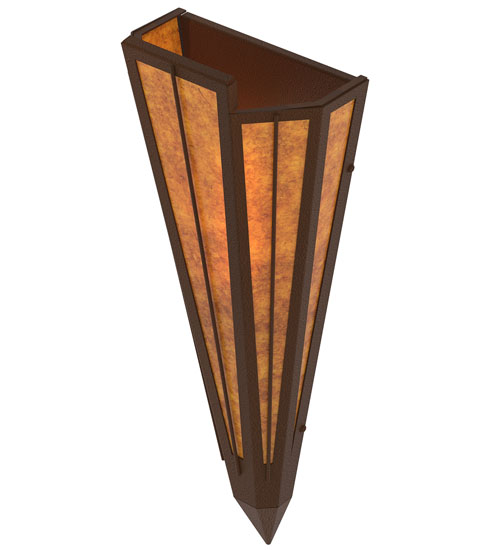 Amber Mica is transformed into abstract lighting design similar to the famed deco designs showcased in Classic Hollywood theaters. This extraordinary V-shaped sconce is complemented with decorative accents and hardware featured in a Sepia Brown finish. Ideal for foyers, corridors and other interiors in homes, home theaters, resorts, hotels and restaurants. Handcrafted by highly skilled artisans in our 180,000 square foot manufacturing facility in Yorkville, New York. Custom colors, styles and sizes are available. Dimmable energy efficient lamping options offered. UL and cUL listed for damp and dry locations.