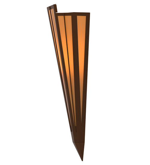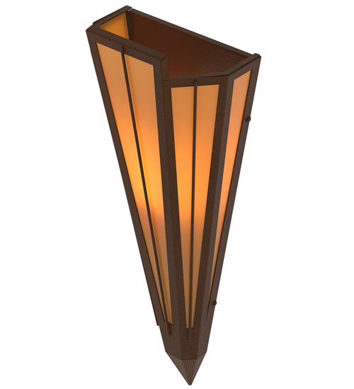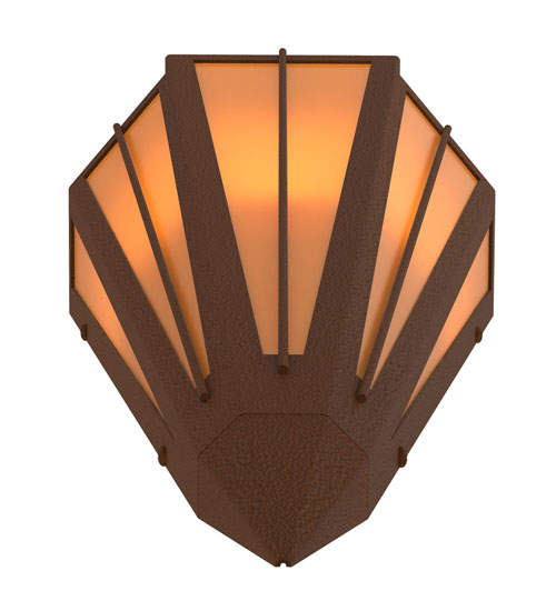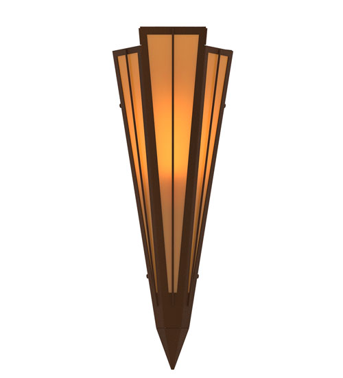 Add elegance with Deco inspired lighting reminiscent od old Hollywood theaters. The Amber Quartz Idalight lens defines an extraordinary V-shaped sconce which is complemented with decorative accents, frame, and hardware in a Sepia Brown finish. The fixture is ideal for foyers, corridors and other interiors in homes, home theaters, resorts, hotels, and restaurants. Custom crafted in our 180,000 square foot manufacturing facility in Yorkville, NY. Available in custom designs, lens colors, hardware finishes, and sizes. Dimmable energy efficient lamping options offered. UL and cUL listed for damp and dry locations.