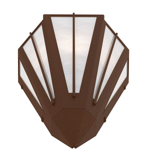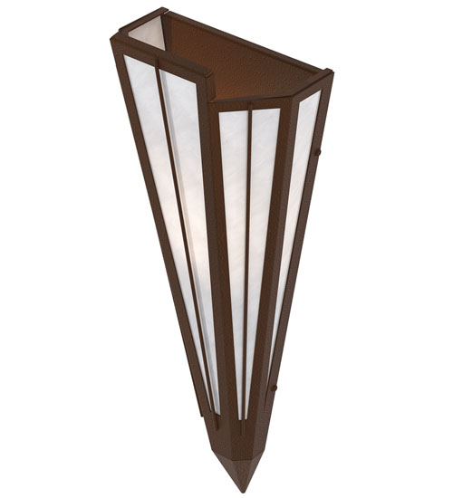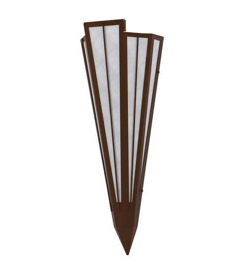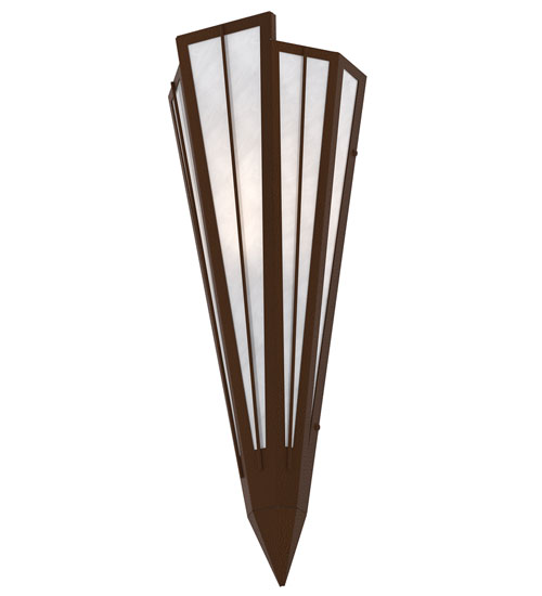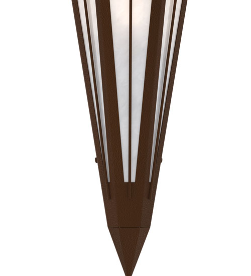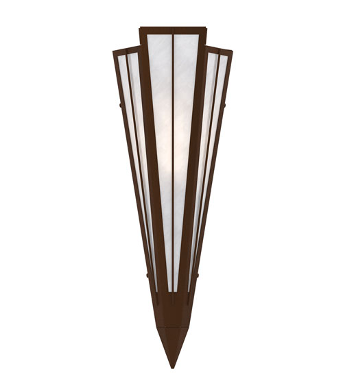 Add elegance with Deco inspired lighting reminiscent of classic Hollywood theaters. The White Art Glass lens defines an extraordinary V-shaped sconce which is complemented with decorative accents, frame, and hardware in a Sepia Brown finish. The fixture is ideal for foyers, corridors and other interiors in homes, home theaters, resorts, hotels, and restaurants. Custom crafted in our 180,000 square foot manufacturing facility in Yorkville, NY. Available in custom designs, lens colors, hardware finishes, and sizes. Dimmable energy efficient lamping options offered. UL and cUL listed for damp and dry locations.