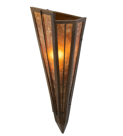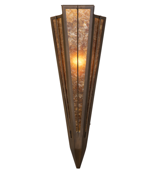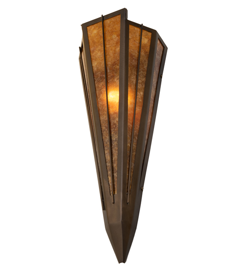 Add elegance with Deco inspired lighting reminiscent of classic Hollywood theaters. The Amber Mica lens defines an extraordinary V-shaped sconce which is complemented with decorative accents, frame, and hardware in Antique Copper finish. The fixture is ideal for foyers, corridors and other interiors in homes, home theaters, resorts, hotels, and restaurants. Custom crafted in our 180,000 square foot manufacturing facility in Yorkville, NY. Available in custom designs, lens colors, hardware finishes, and sizes. Dimmable energy efficient lamping options offered. UL and cUL listed for damp and dry locations.