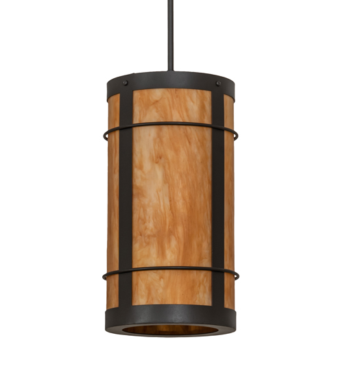 A minimalist cylindrical style that delivers beautiful ambient illumination. This handsome Villa mini pendant is designed with Ambra Sienna Idalight which is complemented with a stunning Wrought Iron finish. Feature the mini pendant in groups to make a statement over a kitchen island, bar, counter or billiard table. Overall height ranges from 40 to 45 inches at the chain can be easily adjusted in the field. The Villa Mini Pendant is included in our American made, American designed, handcrafted Rustic Lighting Collection. UL and cUL listed for dry and damp locations.