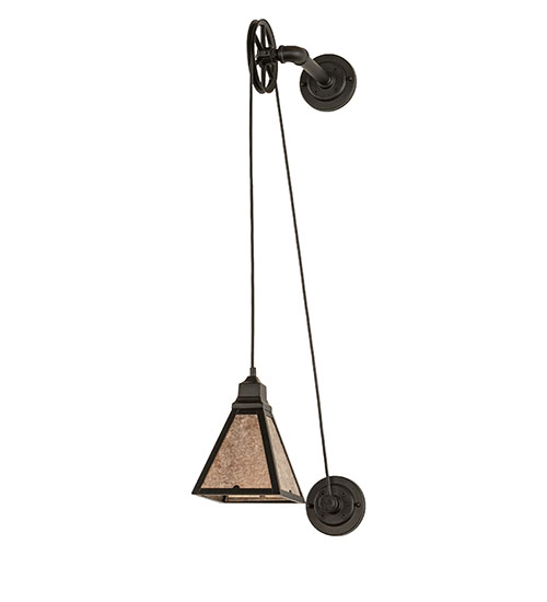 Eclectic minimalism blends a revival look with a traditional Edison bulb and a single pulley with cord for a very unique industrial look. The pulley wheel, piped arm and hardware are featured in an Oxidized Steel finish, accented with Silver Mica. Handmade in the USA, this fixture is available in custom sizes, styles and finishes are available, as well as dimmable energy efficient lamping options such as LED. The fixture is UL and cUL listed for dry and damp locations.