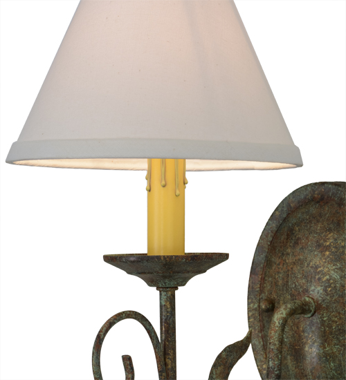 Offering a luxurious charm and elegance. Bordeaux features an Ivory faux candlelight crowned with a Natural Linen shade perched on a bobeche embraced by a Hand-Forged Iron scrolled arm. The fixture features metal leaf accents in a stunning Capri finish. Handcrafted by master artisans in our 180,000 square foot manufacturing facility in Yorkville, New York. Fixture designs, metal finishes and sizes can be customized to meet your needs. UL and cUL listed for dry and damp locations however we do not recommend installing it in spaces that experience a large amount of moisture due to the fabric shade.