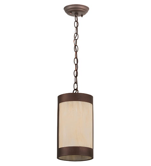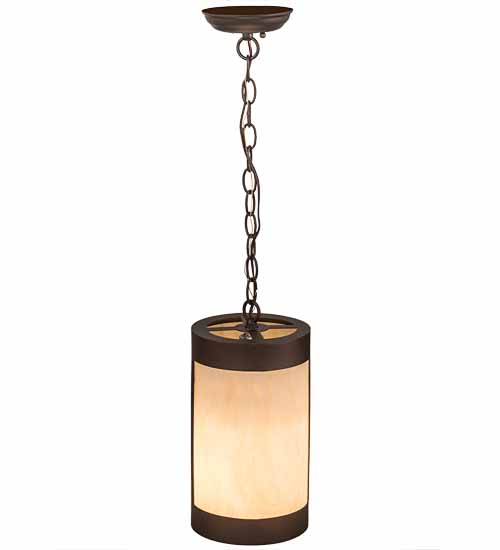 Capturing a transitional eye-catching look, this single Sahara Taupe Idalight shade is complemented with a frame and hardware featured in a Mahogany Bronze finish while a soft glow evokes from within. Install this mini pendant in a group across a counter, bar, island or table to make a dramatic design statement. Handcrafted in our 180,000 square foot manufacturing facility in Yorkville, New York. Custom options include special sizes, styles, and finishes, as well as dimmable energy efficient lamping options such as LED. The 7-inch wide pendant is UL and cUL listed for dry and damp locations.