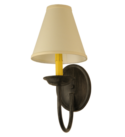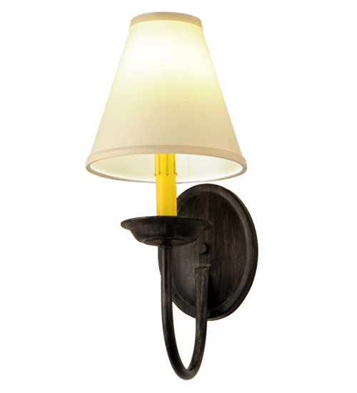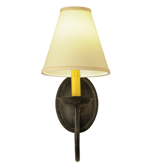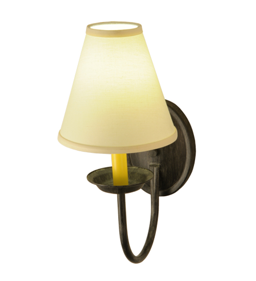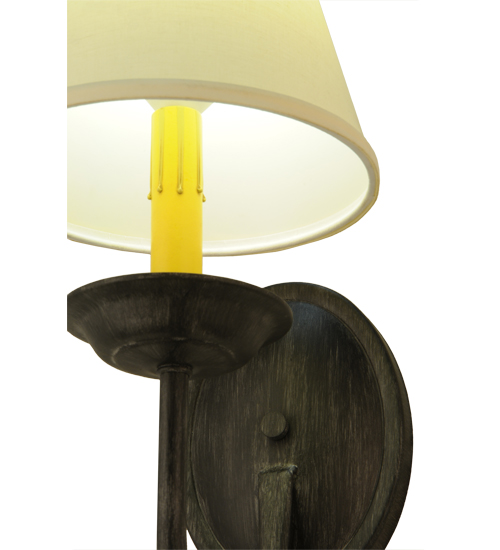 Offering a refined, distinguished look that will complement the most luxurious interiors… The Perouges wall sconce creates soft illumination and sophistication with an elegant material palette. The Parchment shade is perched on an Ivory faux candlelight and complemented with an Antique Iron Gate finish. The wall fixture is perfect for illuminating hallways and dining spaces in fine homes and hospitality spaces from Hialeah, Florida, to Garland, Texas, to Glendale, Arizona. The Perouges Wall Sconce is featured in our American-made, American-designed, handcrafted Modern Collection. UL and cUL listed for dry and damp locations; however, we do not recommend placing it in spaces that experience a large amount of moisture due to the fabric shade.