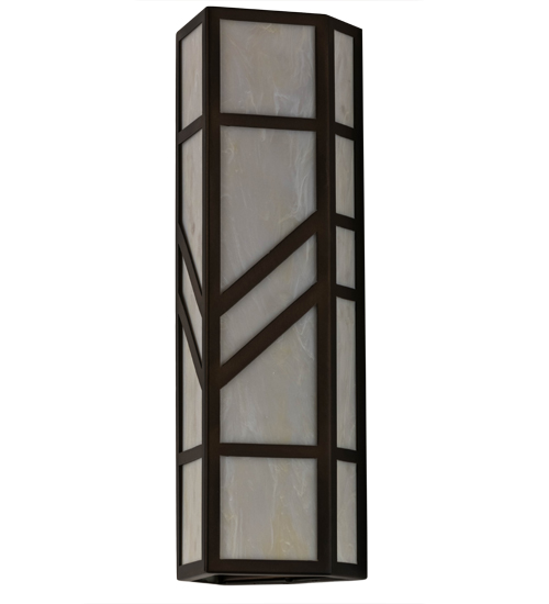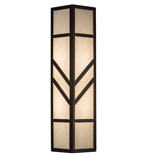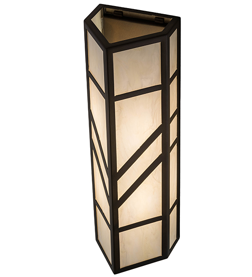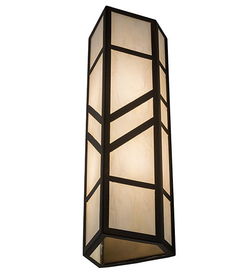 With a striking southwestern Mission styled design, emerges the stunning Santa Fe wall sconce. A charming aura projects from Creme Carrare Idalight with bold geometric styling. Complemented with an Antique Copper finished frame and hardware, the handcrafted wall fixture is ideal for ambient decorative lighting in a corridor or any room where you want to make a bold design statement. Handmade in the USA, this sconce is available in custom designs, colors and sizes, as well as with dimmable energy efficient lamping such as LED. The sconce is UL and cUL listed for damp and dry locations.