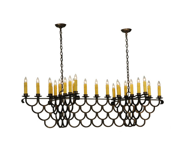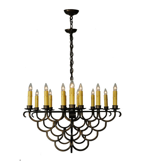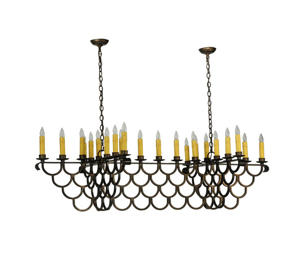 A lighting masterpiece featuring an elaborate scalloped steel design hand finished in Antique Copper with hand applied stippled effects of Copper and Iron highlights. The fixture features 23 faux candlelights and is custom crafted by highly skilled artisans in our 180,000 square foot manufacturing facility in Yorkville, New York. Choose from an extensive custom palette of lighting designs, sizes, colors, styles and energy efficient lamping options. UL and cUL listed for damp and dry locations.