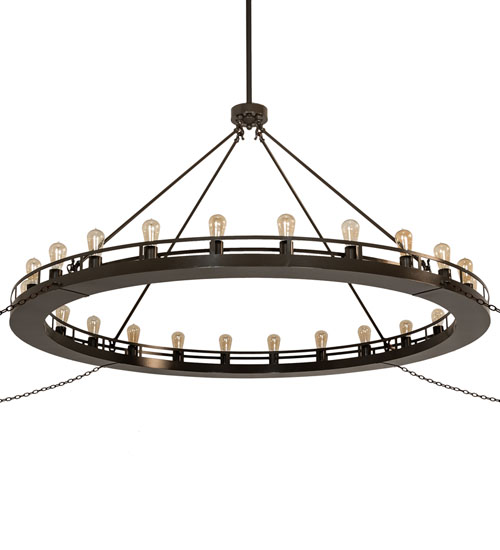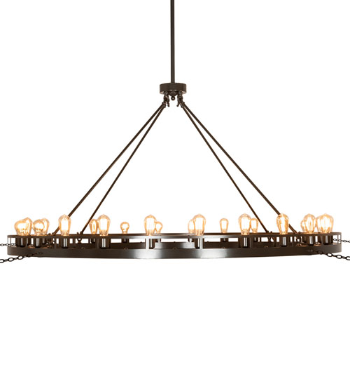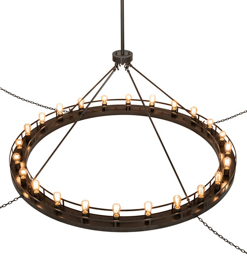 Blending an old-world style with a rustic look. This Barbury ceiling fixture is custom-crafted with 24 miniature lamps on a decorative ring that is hand-finished in Timeless Bronze with added pretreatment for extra durability in outdoor covered areas. This massive Ring is ideal for illuminating dining areas, conference tables, lobbies, and other residential, hospitality, and commercial settings from Lowell, Massachusetts, to Pittsburgh, Pennsylvania, to Pullman, Illinois. The Barbury 24 Light Chandelier is featured in our American-made, American-designed, handcrafted Industrial Lighting Collection and manufactured in Yorkville, New York. UL and cUL listed for dry and damp locations.