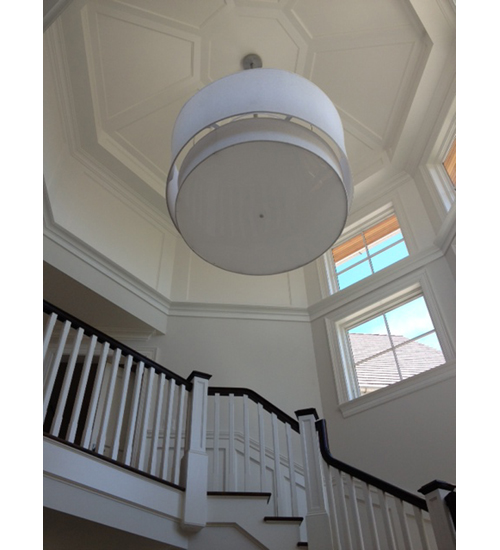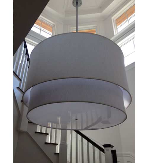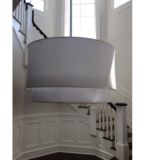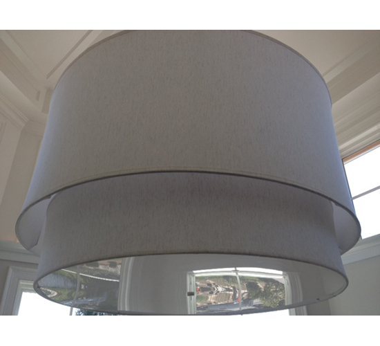 Designed with a massive, round profile that fits into luxury homes, hotels and other commercial and hospitality locations. This 2 tier pendant defines a distinctive sophisticated aesthetic. The large Cream Textrene shades are complemented with hardware featured in a Nickel powder coat finish and enhanced with a Statuario Idalight bottom diffuser. Custom crafted by highly skilled artisans in our 180,000 square foot manufacturing facility in Yorkville, NY. UL and cUL listed for dry and damp locations however we do not recommend installing it in spaces that experience a large amount of moisture due to the fabric shades.