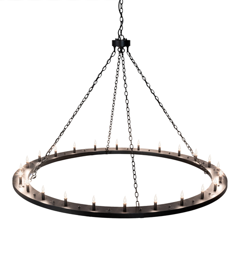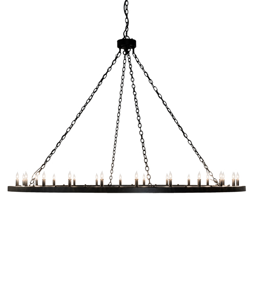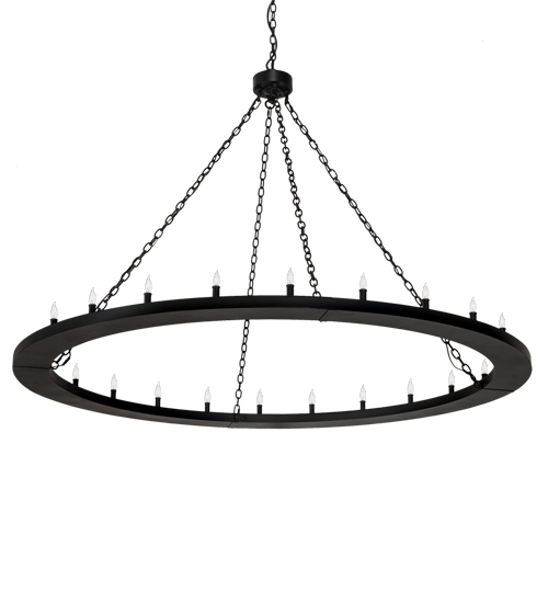 Blending an elegant style with a classic distinguished look… This massive Loxley Chandelier is custom crafted with 24 lamps on a sturdy ring which is featured in a Textured Black finish. Overall height ranges from 55 to 120 inches as the chain easily adjusts in the field. The fixture is ideal for illuminating dining tables, conference tables, entryways and lobbies. The Loxley Chandelier is featured in our American made, American designed, handcrafted Transitional Lighting Collection. Manufactured in Yorkville, New York. UL and cUL listed for dry and damp locations.