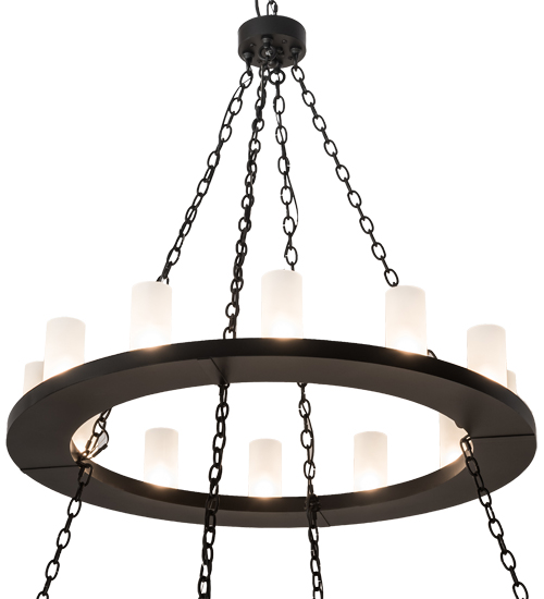 Blending an elegant style with a classic distinguished look. Loxley is custom crafted with 36 Clear Frosted Glass Cylindres on two tiers. The massive chandelier is featured in a Textured Black finish. Ideal for illuminating dining areas, conference tables, lobbies and other residential, hospitality and commercial spaces. The overall height ranges from 93 to 213 inches as the chain length can be easily adjusted in the field to accommodate your specific lighting needs. Handcrafted by highly skilled artisans in our 180,000 square foot manufacturing facility in Yorkville, New York. Diffuser colors, metal finishes and fixture sizes can be customized to your needs. UL and cUL listed for dry and damp locations.