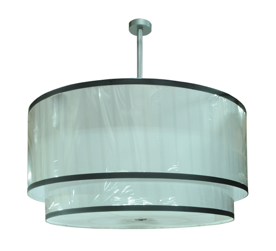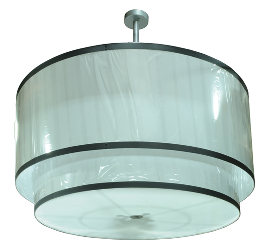 Designed to add drama to large interior spaces, this 72″” diameter two-tier Linen Textrene pendant, with a Statuario Idalight diffuser on the bottom, features an elegant transitional look that blends with any interior decor. The decorative shade features Textured Black bands on the shades, which are complemented with a Sparkle Silver powder coat finished hardware. Crafted by highly skilled artisans in the Yorkville, New York manufacturing facilities. Energy efficient lamping options. UL and cUL listed for dry and damp locations.