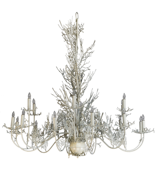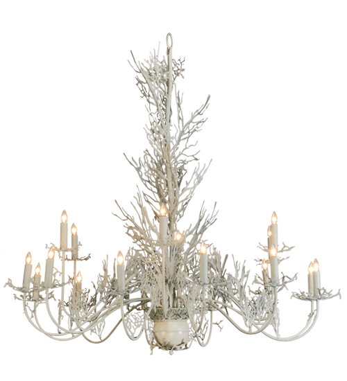 A stunning masterpiece. The natural beauty of deep-sea plant life comes alive with elaborate s coral-styled decorative accents. All of the hardware is hand finished in a Beige Hammered finish. 18 Candlelights are perched on matching arms. Handcrafted by highly skilled artisans in our manufacturing facility located at the foothills of New York’s Adirondack Mountains. Custom colors, sizes and styles available.