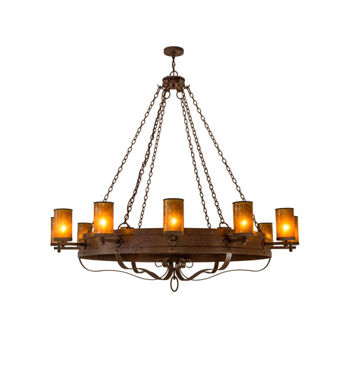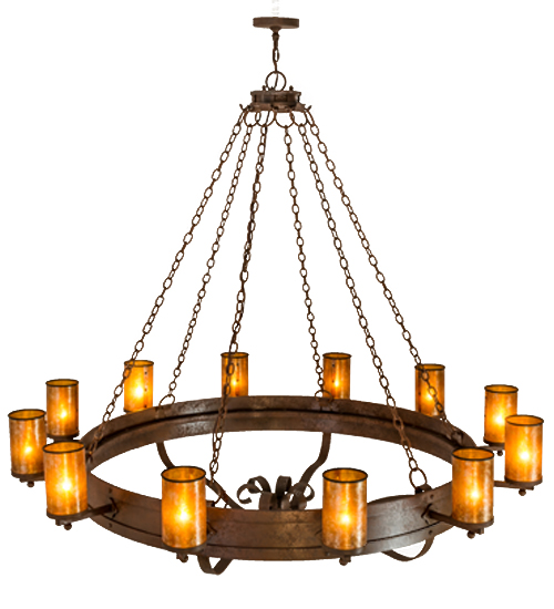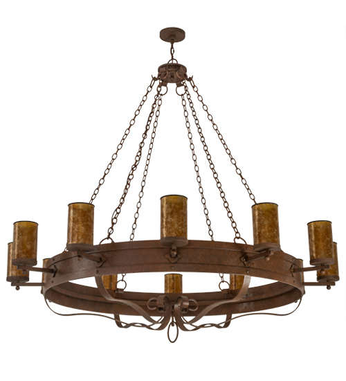 Custom crafted for the King or Queen in your castle, Parnella presents a touch of warm opulence blended with handsome rustic styling. This chandelier offers an extraordinary transitional style as sparkling illumination evokes from 12 stunning Amber Mica diffusers that adorn the perimeter of this Solid Steel ring with decorative arms and accents in a Rusty Nail finish. This fixture will make a design statement as a centerpiece in any room including an entryway, lobby, conference room and locations. Quality materials and hand detailed American craftsmanship are perfected by years of time honored artistry, passed down from generations of prolific artisans. Handcrafted by highly skilled artisans in the USA, this fixture is available in custom sizes, styles, colors and dimmable energy efficient lamping options. Parnella is UL and cUL listed for dry and damp locations.