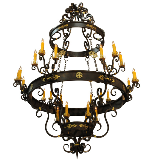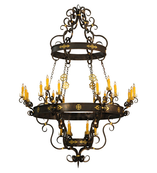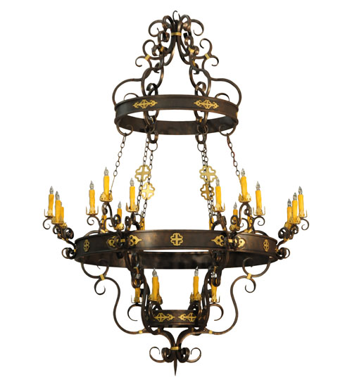 Aesthetic allure is created through elegant details, proportional balance and harmonious elements. Stunning metal rings featured in a Gilded Tobacco finish with Gold accents embellish this breathtaking fixture while 24 Amber faux candle lights, supported by bobeches attached to gracefully curved arms, provide decorative lighting for a broad range of applications. The overall height ranges from 100 to 217 inches and the chain length can be easily adjusted in the field to accommodate your specific lighting application needs. Custom crafted artisans in our 180,000 square foot manufacturing facility in Yorkville, New York. Special sizes, finishes and diffuser colors available. UL and cUL listed for dry and damp locations.