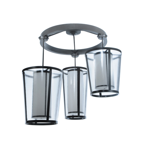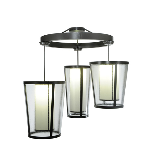 Designed with curved profiles and a clean architectural look, this appealing and versatile ceiling fixture defines a sophisticated aesthetic. This cascading pendant features three distinctive shades with Clear Seeded Acrylic that reveal Statuario Idalight cylindrical diffusers. The hardware is featured in a Timeless Bronze finish. Handcrafted by highly skilled artisans in our manufacturing facility in Upstate New York, this transitional styled pendant is available in a wide range of custom choices including various designs, colors, sizes and dimmable energy efficient lamping options such as LED. This fixture is UL and cUL listed for damp and dry locations.