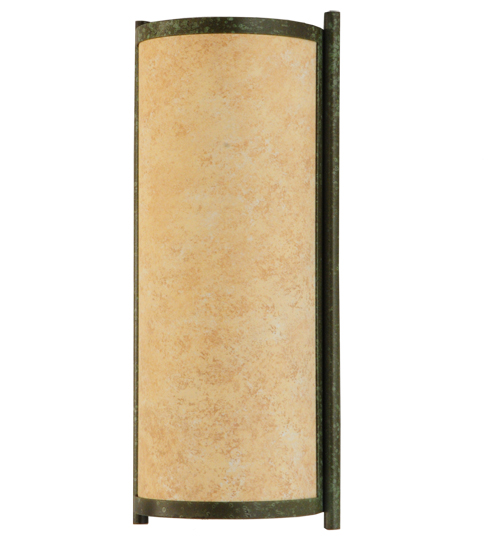 An appealing curved architectural design defines the Cilindro Palomino wall sconce. Beautiful ambient light projects through a Handpainted Textrene shade which is enhanced with a frame and hardware featured in a Weathered Brass finish. Handcrafted by highly skilled artisans in our manufacturing facility in Upstate New York, this transitional styled fixture is available in a wide range of custom choices including various designs, colors, sizes and dimmable energy efficient lamping options such as LED. The fixture is UL and cUL listed for damp and dry locations.